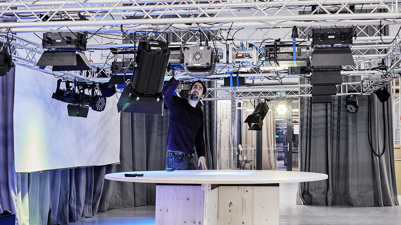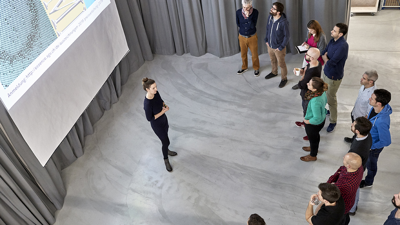 Die Stage ist ein modularer Raum für Präsentationen, Prototypen, Ausstellungen und Veranstaltungen. Von Mock-ups über Ausstellungs-Setups bis hin zu Vorträgen, Performances, Foto- und Filmshootings usw. – die Stage bietet den passenden Rahmen, um Ideen sichtbar zu machen und neue Möglichkeiten auszuloten.