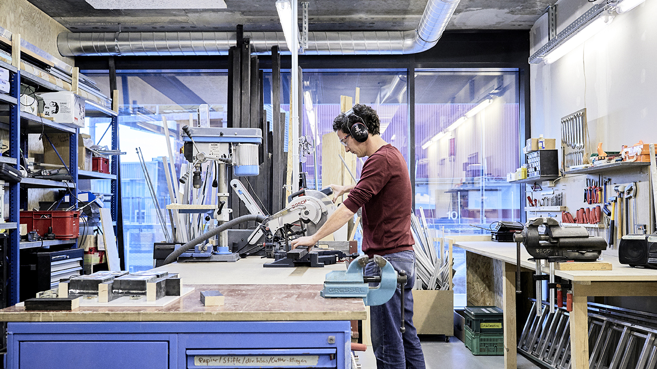 Zur Verfügung stehen eine gut ausgestattete Holz- und Metallwerkstatt inklusive CNC-Fräse, eine 3D-Druck-Werkstatt, eine Elektronikstation, ein technisches Materiallager sowie einem Plotter – ideal für Prototypen, Modelle oder technische Experimente.